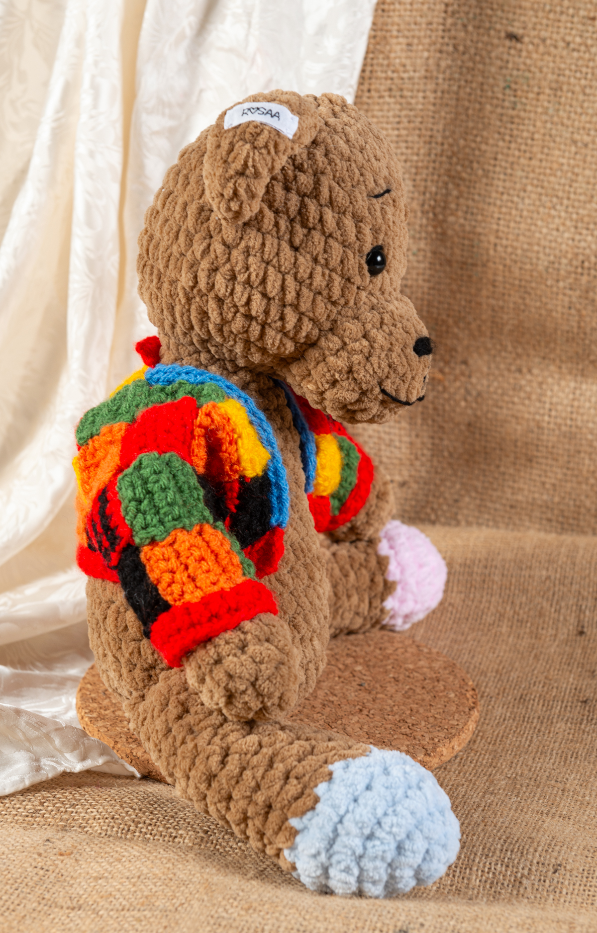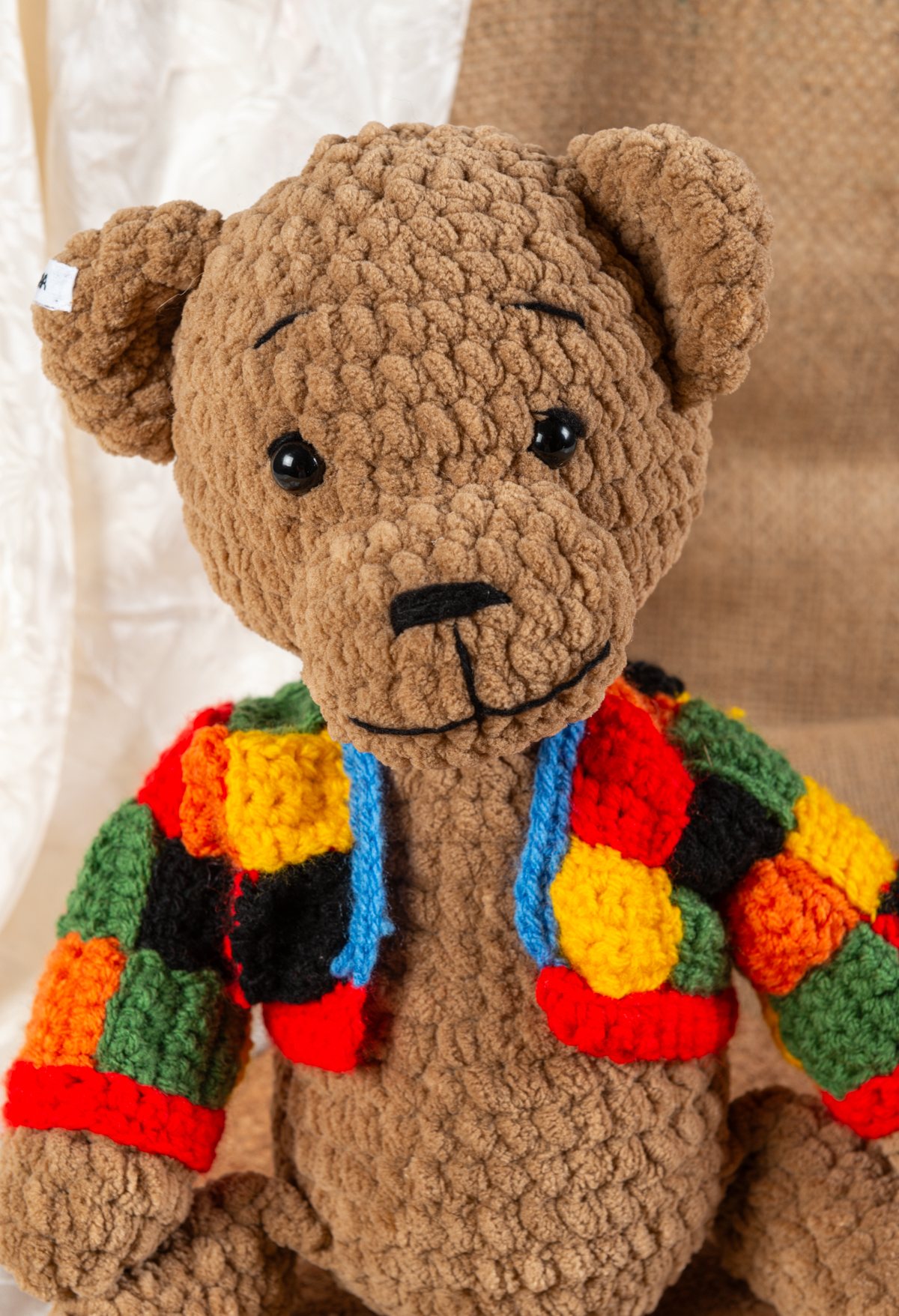 Mit Sicherheitsaugen und sorgfältiger Verarbeitung eignet sich der Bär für jedes Alter. Jeder „Bär Styles“ ist ein echtes Unikat – mit Liebe gehäkelt und aus ausgewählten Materialien hergestellt.